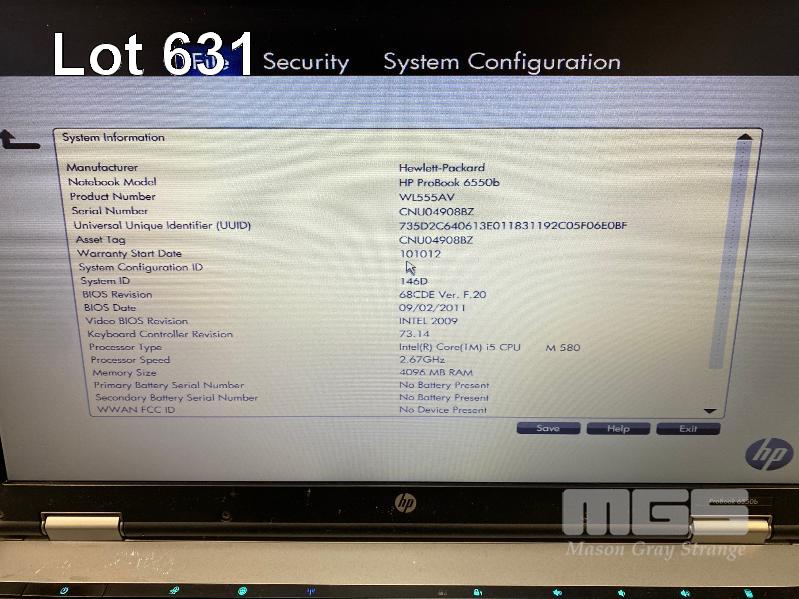 LAPTOP, HP PROBOOK 6550b (WL555AV), CORE i5 M580 @ 2.67GHz, 4GB DDR3 RAM, 160GB SATA HDD, 15.6" WIDESCREEN (1366x768), INTEL HD VIDEO, Wi-Fi, BLUETOOTH, WINDOWS 7 PRO INSTALLED W/ LICENSE & POWER SUPPLY (NOTE: BATTERY NOT CHARGING) S/N:CNU04908BZ