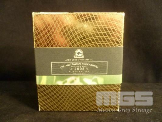 PERTH MINT, ANDA COIN SHOW SPECIAL, 2008, THE AUSTRALIAN KOOKABURRA SILVER COIN SERIES, 1oz, $1, SILVER PROOF COIN, 24CT GOLD PLATED, 1072/3000