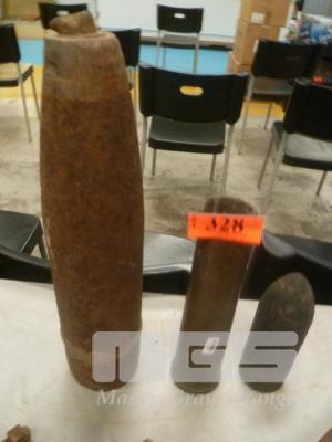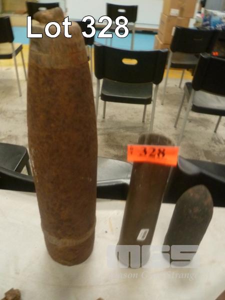 2 x VINTAGE ARTILLERY ROUNDS & BRASS SHELL CASING