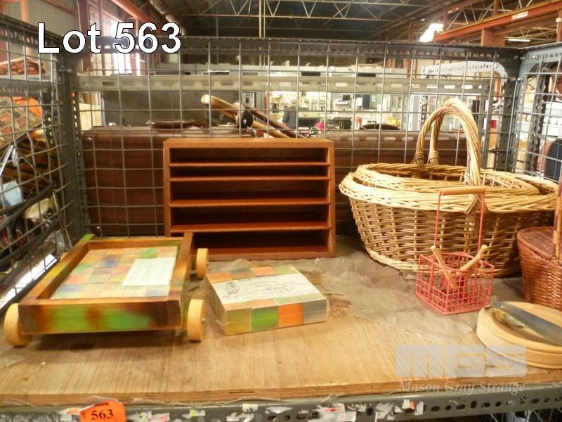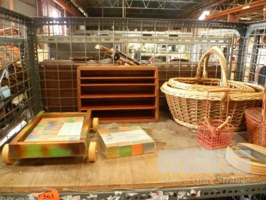 WICKER BASKETS, LETTER SORTER, CHILDRENS BLOCKS, ETC