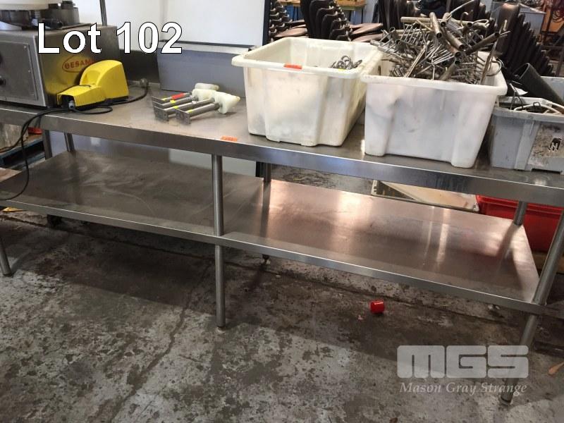 STAINLESS STEEL PREP BENCH, 240 x 70cm, 2 TIER WITH SPLASHBACK