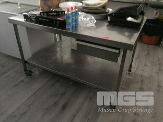 MOBILE STAINLESS STEEL ISLAND BENCH, 150 x 100cm, 2 DRAWER, 2 TIER