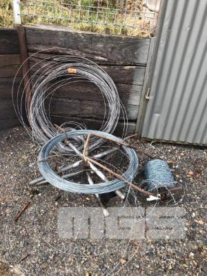 APPROX 300m FENCING WIRE, INCLUDING WIRE SPINNER & APPROX 100m BARBED WIRE SPOOL