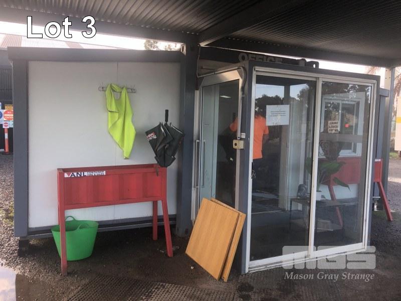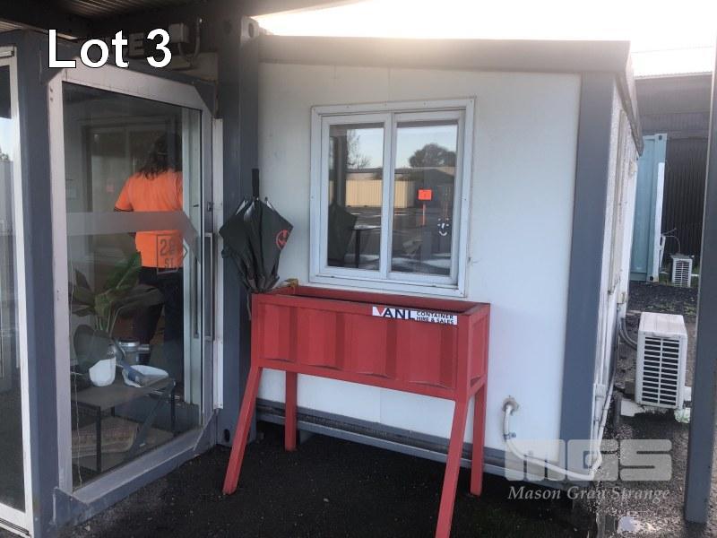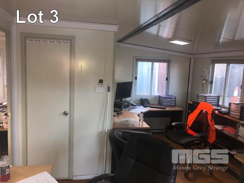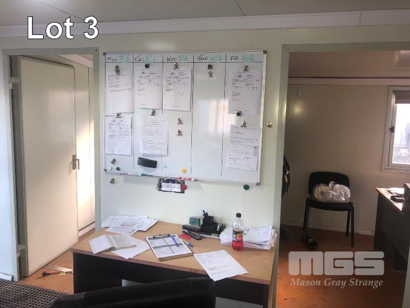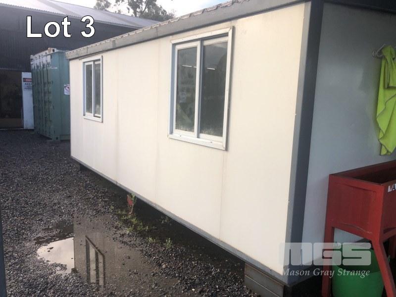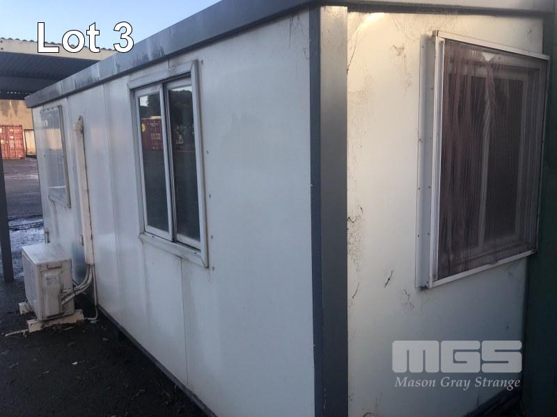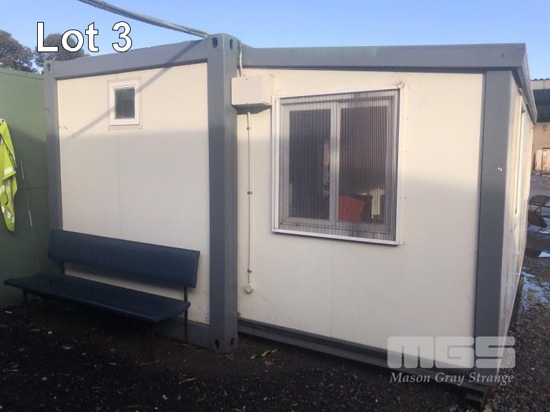 TRANSPORTABLE OFFICE/ACCOMMODATION MODULE EXPANDING & RETRACTABLE MULTI PLAN LAYOUT MAIN ROOM, 2 x OFFICES & BATHROOM, DOUBLE SIDED HINGED ROOF & FLOOR PANELS, FITTED WITH SHOWER, TOILET & BASIN 7 x WINDOWS, INSULATED PANELS, POWER, LIGHTING, PLUMBING & SPLIT SYSTEM AC UNIT SIZE OPEN: 6 x 6m x 2.5m (H) APPROX SIZE CLOSED: 5.85 x 2.25 x 2.5m (H) APPROX 900 x 1200 SLIDING GLASS DOOR ENTRY AREA INCLUDING 3 x OFFICE DESKS, BOOKSHELVES, CHAIRS, ETC (BUYER TO DISCONNECT UTILITIES)