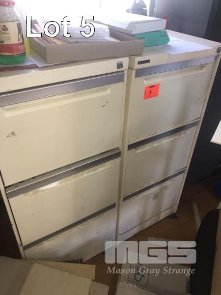 2 x 3 DRAWER FILING CABINETS, CREAM STEEL