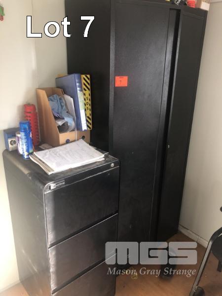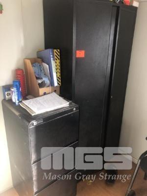 STORAGE CABINET, 2 DOOR, BLACK STEEL, 1830 x 860mm & 3 DRAWER FILING CABINET, BLACK STEEL