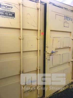 20' BUNDED SHIPPING CONTAINER, STEEL MESH FLOORING, VENTILATED WITH DRUM RACK