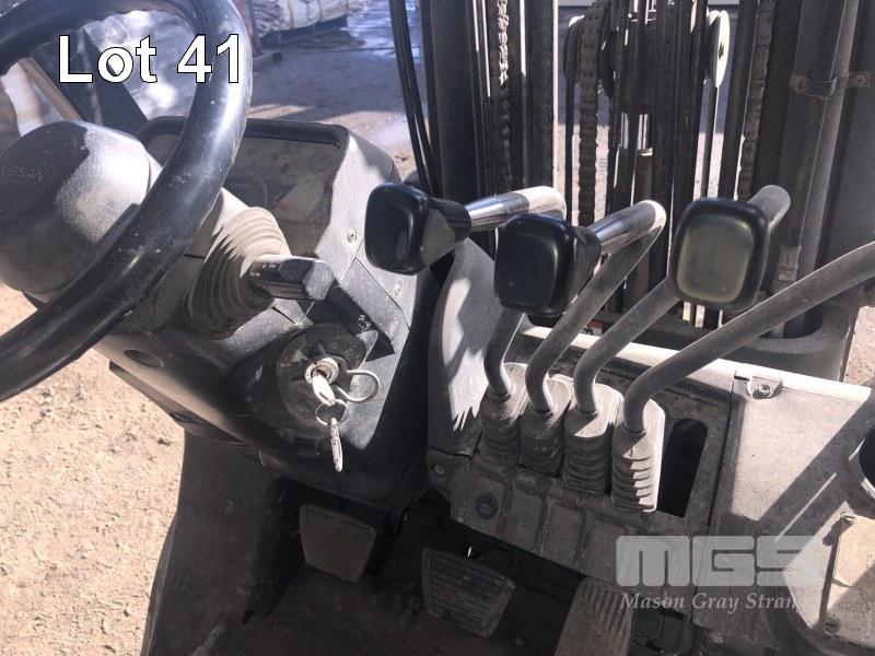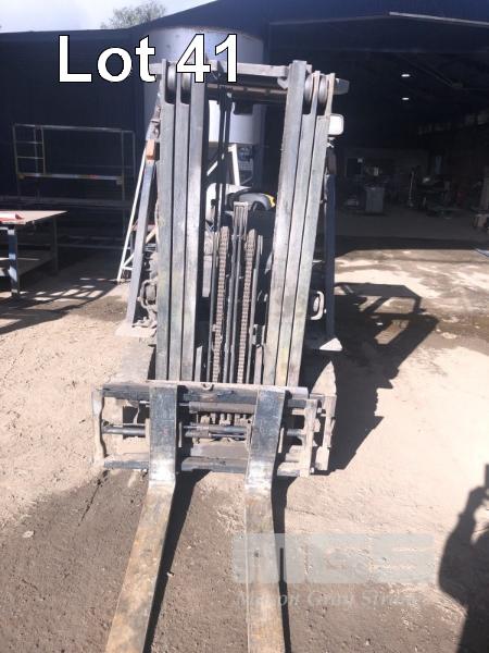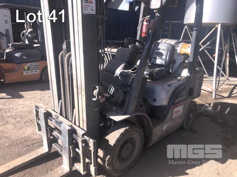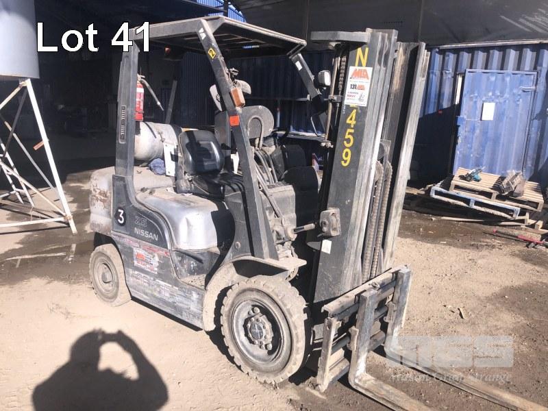 NISSAN FORKLIFT MOD: PL02A25SU S/NO: 004945 MAX LIFT: 1,900kg LIFT HEIGHT: 4,300mm 3 STAGE CONTAINER MAST WITH SIDE SHIFT 4 CYLINDER LPG/PETROL ENGINE HOURS: 9,796 SHOWING AIR TYRES PLEASE NOTE: FORKLIFT TO STAY ON SITE FOR 48 HRS FOR LOADING