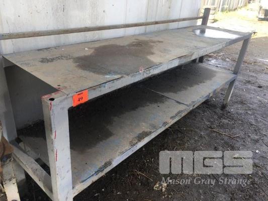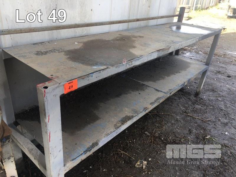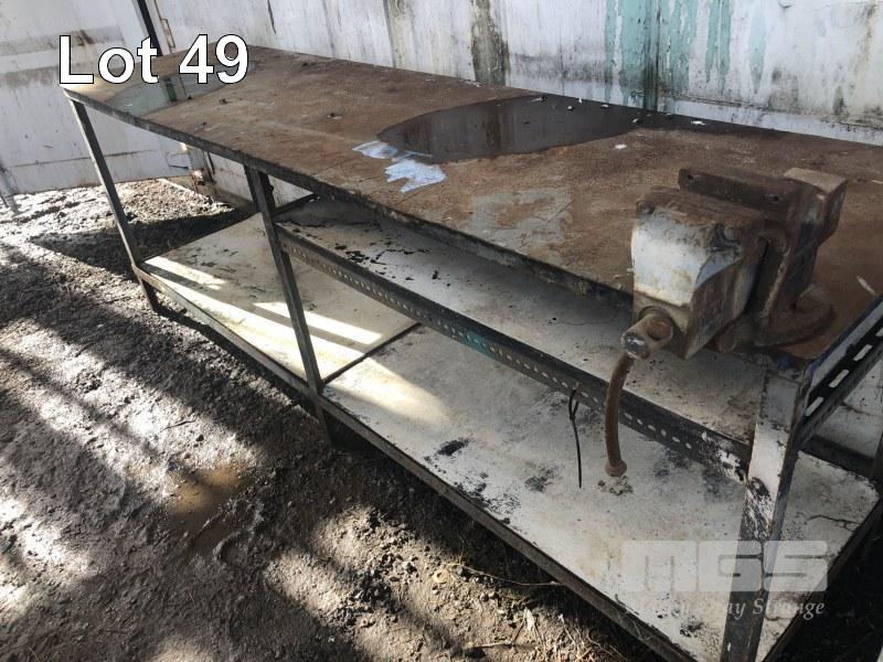 WORK BENCH, STEEL TOP & FRAME, 2400 x 600 x 860mm (H), VICE & STEEL RACK, 2550 x 600 x 1000mm (H)