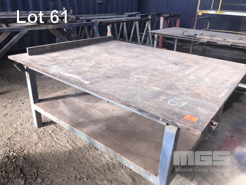 HEAVY DUTY WELDERS BENCH, PLATE STEEL TOP, 2 TIER, 2140 x 1690 x 25 THICK x 900mm (H)