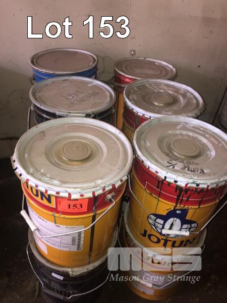 12 x PART 20 LITRE DRUMS INDUSTRIAL PAINT, VARIOUS COLOURS, JOTUN, WATTYL, ETC