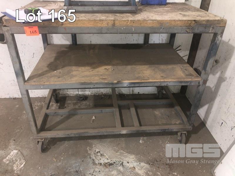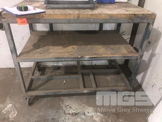 MOBILE 3 TIER BENCH, 1200 x 650mm, STEEL FRAME, TIMBER TOP & 2 x WHITEBOARDS