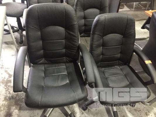 7 X MATCHING OFFICE ARM CHAIRS, BLACK VINYL.