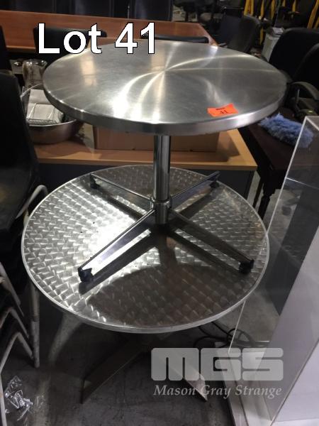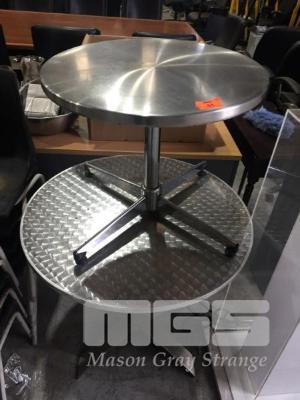 2 x ALUMINIUM TABLES, 60 & 80cm DIAMETER