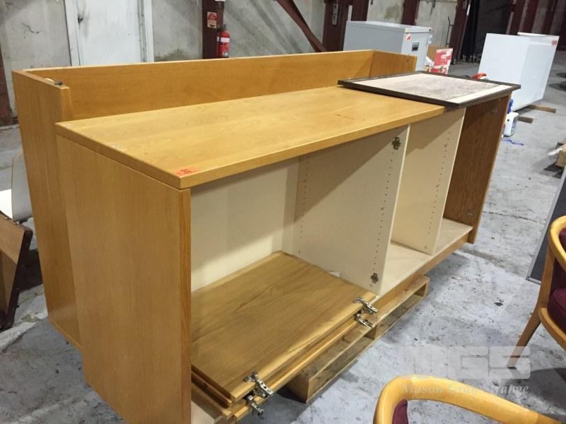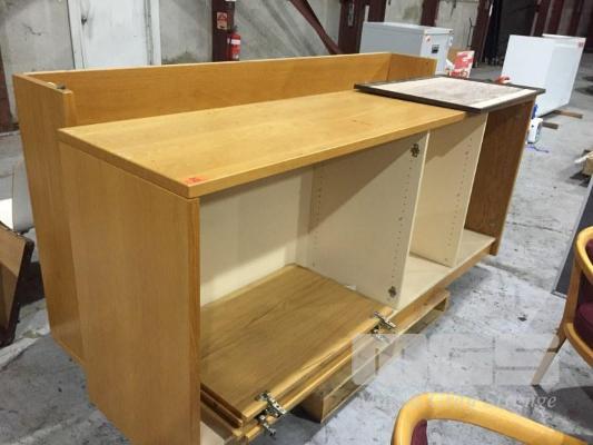 FLOOR CUPBOARD, 240 x 60cm, 4 DOOR, TIMBER VENEER WITH HUTCH