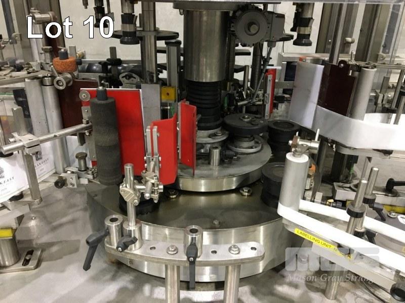 ROTARY LABELLER, CAVAGNINO & GATTI MOD: CG-TL-5-4X PSP-2-SFG-MP SERIAL: 10716 DOM: 2017 PRO FACE CONTROLLERS STAINLESS STEEL CASED, 5 HEAD WITH IN FEED CONVEYOR, SINGLE TRACK, 1000mm (L) SEW VARIABLE SPEED, DRIVE TYPE: 4X (NOTE: TO BE SEPARATED AT RED MARKINGS & BUYER TO GET ELECTRICAL DISCONNECTIONS)
