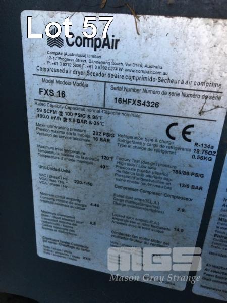 AIR REFRIGERANT DRYER UNIT, COMPAIR MOD: FXS16 WORK PRESS: 232 PSIG, 240V WITH 2 x COMPAIR FILTER/TRAPS (NOT INC AIR LINE)
