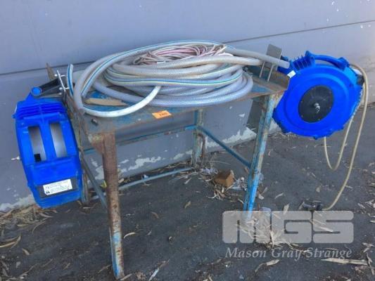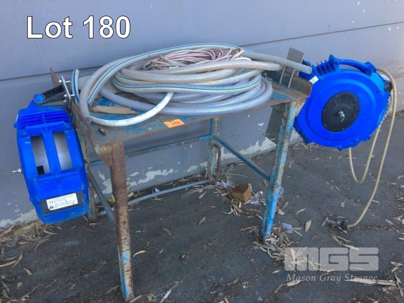 STEEL WORK BENCH, 5mm PLATE TOP, 1060 x 700 x 900mm (H) WITH RETRACTABLE AIRLINE REEL & HOSES