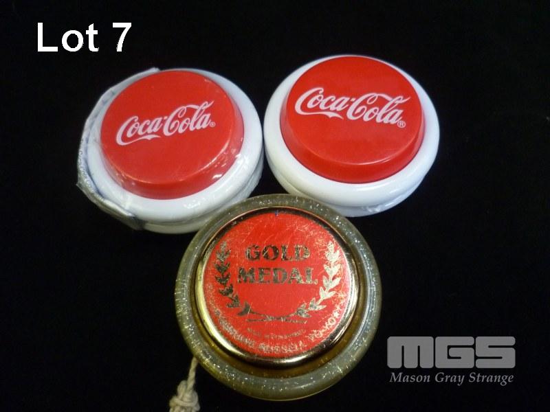 3 x VINTAGE COLLECTABLE COCA-COLA YO YO'S INC LOS ANGELES OLYMPICS 1984 SOFT DRINK YO YO
