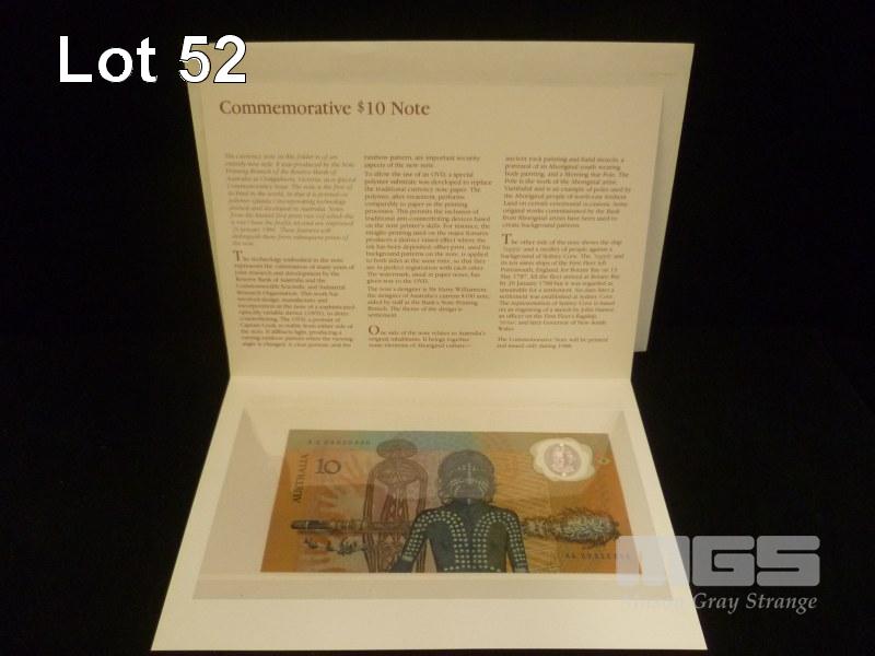 1988 $10.00 NOTE COMMEMORATIVE "JAN 26 1988 OVERPRINT" IN FOLDER + ENVELOPE UNC