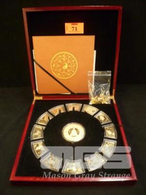 BOXED MACQUARIE MINT CHINESE LUNAR ZODIAC COLLECTION, 24cT GOLD PLATED COINS