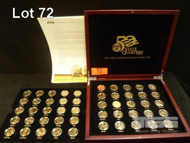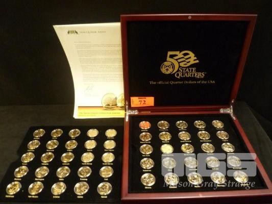 BOXED 50 STATE QUARTERS USA MACQUARIE MINT COINS, 24ct GOLD PLATED