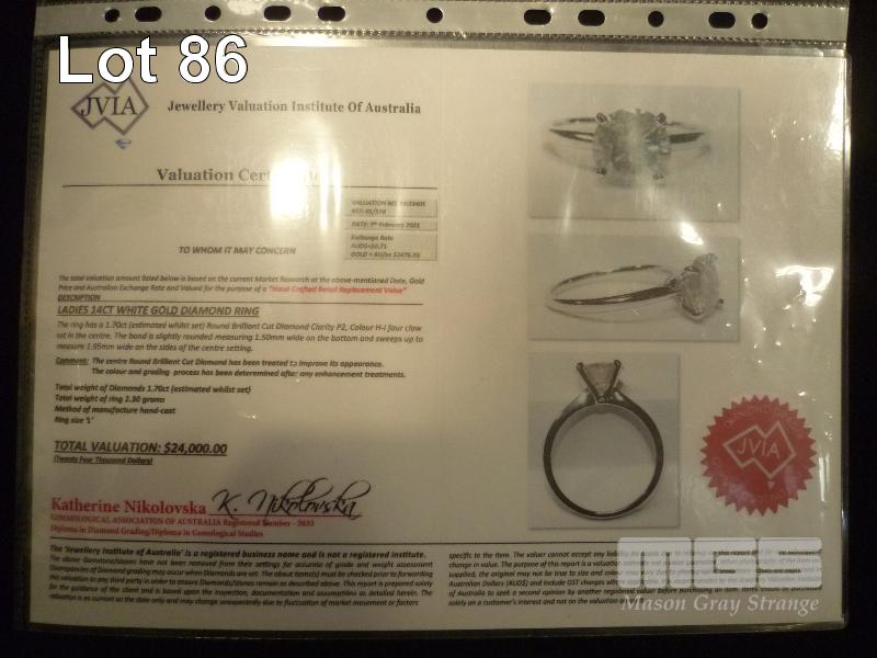 1.7ct SOLITARE DIAMOND RING 14ct WHITE GOLD, WITH VALUATION CERTIFICATE FOR $24,000