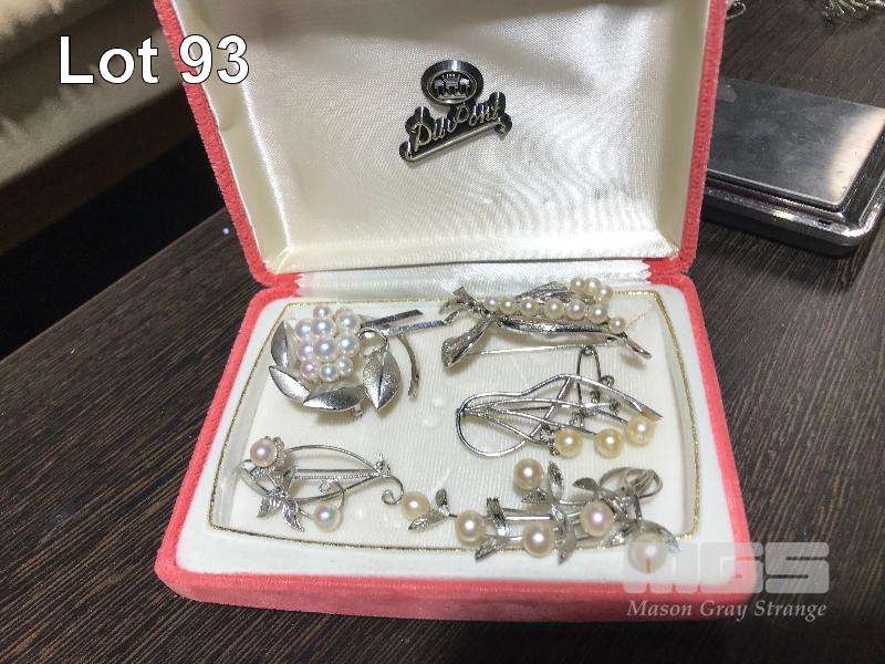 STERLING SILVER & PEARL BROOCHES, FLOWER & LEAF DESIGN, 37gm (INC PEARLS)