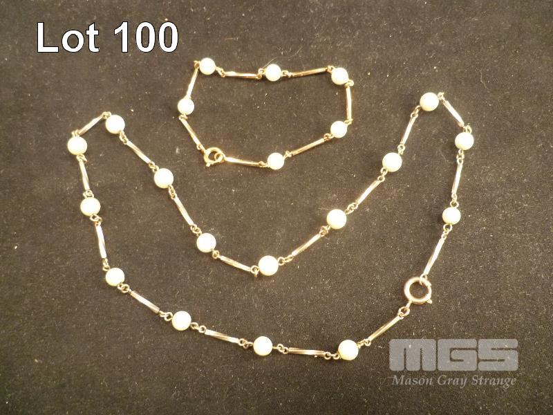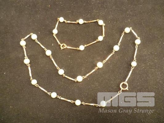 GOLD & PEARL NECKLACE & BRACELET SET, GOLD BAR LINKS WITH SINGLE PEARLS, 9ct, 11.5gm TOTAL WEIGHT