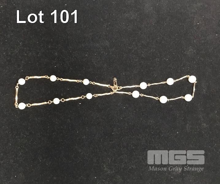 GOLD & PEARL DOUBLE LINK BRACELET, GOLD BAR LINKS WITH SINGLE PEARLS, 9ct, 7.9gm TOTAL WEIGHT