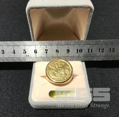 GOLD RING WITH SOVEREIGN SIGNET SETTING, 9ct, 11gm