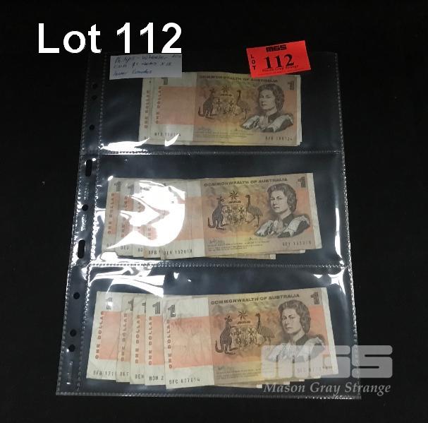 15 X AUSTRALIAN ONE DOLLAR PAPER BANKNOTES, PHILLIPS/WHEELER, B PREFIXES