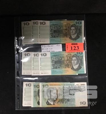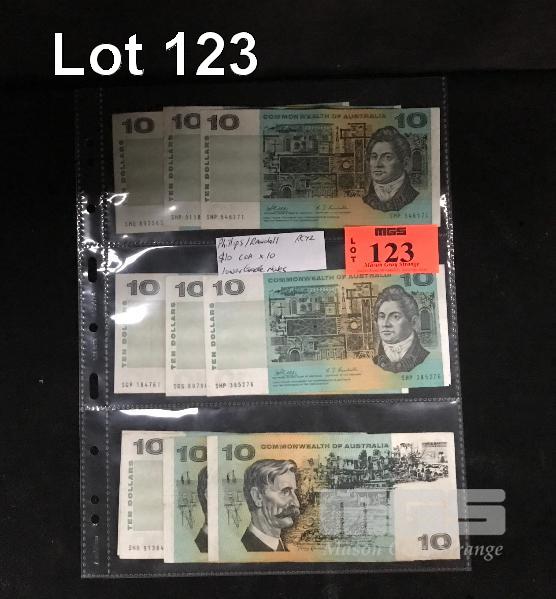 10 X AUSTRALIAN TEN DOLLAR PAPER BANKNOTES, PHILLIPS/RANDALL, S PREFIXES