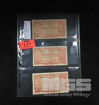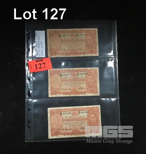 3 X AUSTRALIAN TEN SHILLING BANKNOTES, COOMBES/WATTS, A PREFIXES