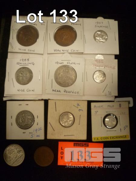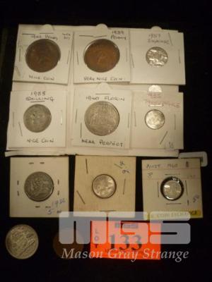 11 X AUSTRALIA PRE-DECIMAL COINS, INC; 1949 HALF PENNY, 1942, 1939 PENNY'S, 1935, 1960 THREEPENCE, 1954, 1957 SIXPENCE, 1936,1958, SHILLING, 1940, 1962 FLORIN