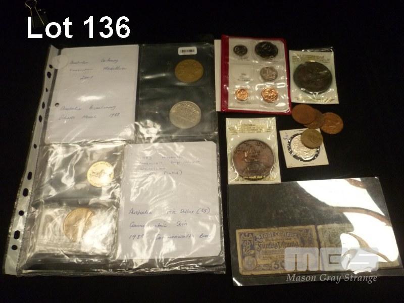 ASSORTED AUSTRALIA COINS, COMMEMORATIVE & TOKENS, INC; 1966 ROUND 50c, 1969 APOLLO 11, ETC