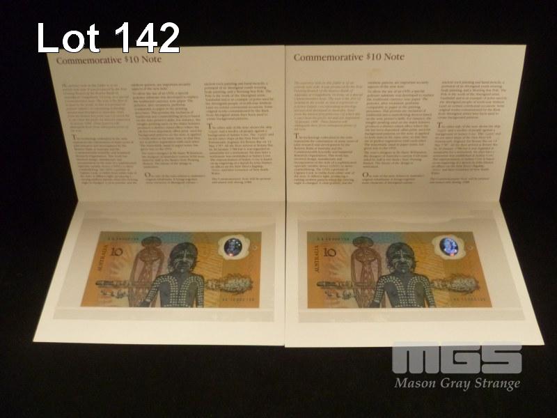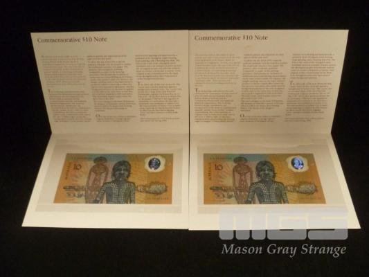 1988 2 x $10.00 NOTE COMMEMORATIVE CONSECUTIVE IN FOLDER UNC