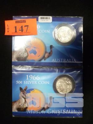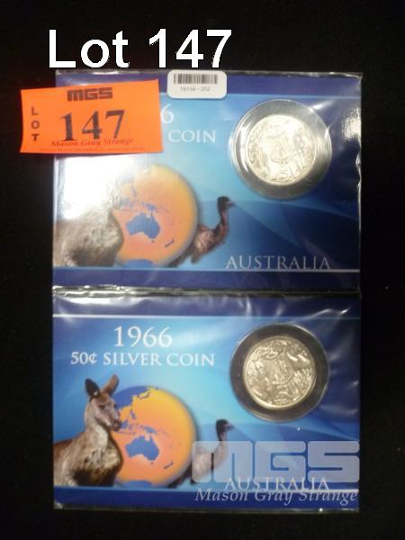 2 x 1966 AUSTRALIAN ROUND .50c COINS, MINT UNCIRCULATED IN COLLECTOR PACKS