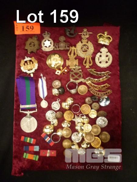 ASSORTED MILITARY MEDALS,BADGES, BUTTONS, ETC