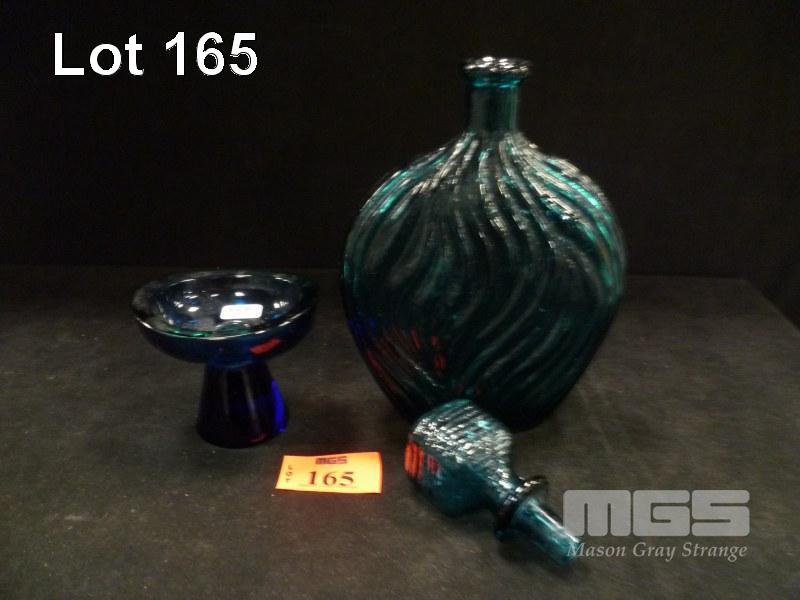 BRISTOL BLUE GLASS CANDLE HOLDER & BLUE GLASS GENIE BOTTLE