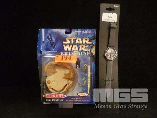 STAR WARS ACTION FLEET MINI SCENE 4 SITH PURSUIT ON ORIGINAL CARD & MANDALORIAN WATCH, NEW, NEVER USED