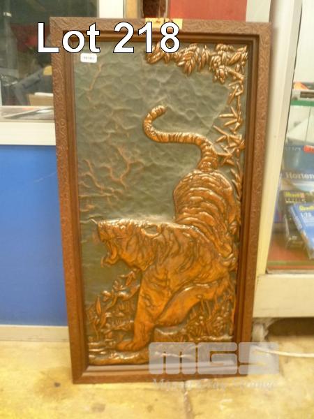 FRAMED EMBOSSED COPPER TIGER PICTURE, 66 x 35cm