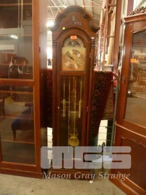 TIMBER LONG CASED CLOCK, GLASS FRONTED & SIDES, PENDULUM & WEIGHTS
