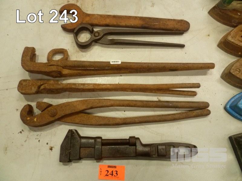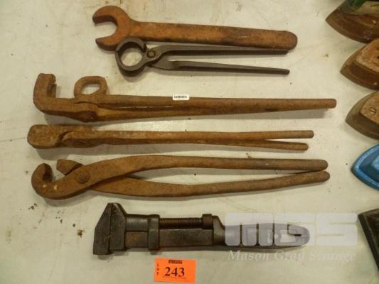 COLLECTION OF BLACKSMITH FORGE TOOLS, WITH ADJUSTABLE WRENCH