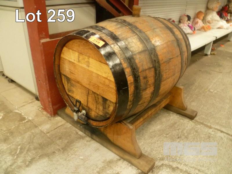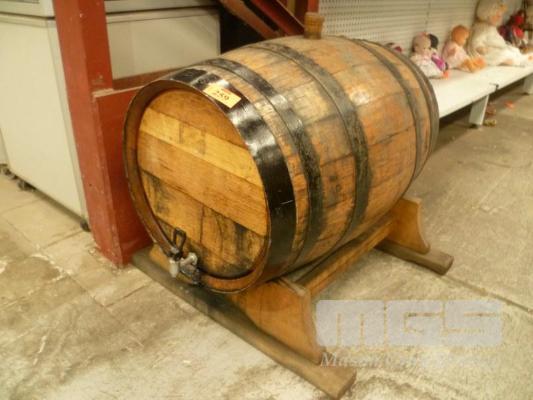 LARGE PORT BARREL ON STAND, APPROX 100+ LITRES