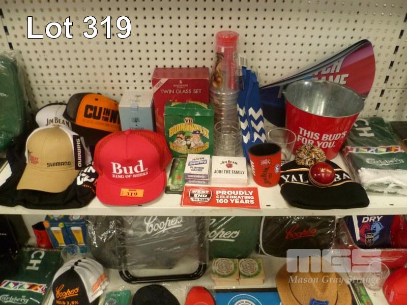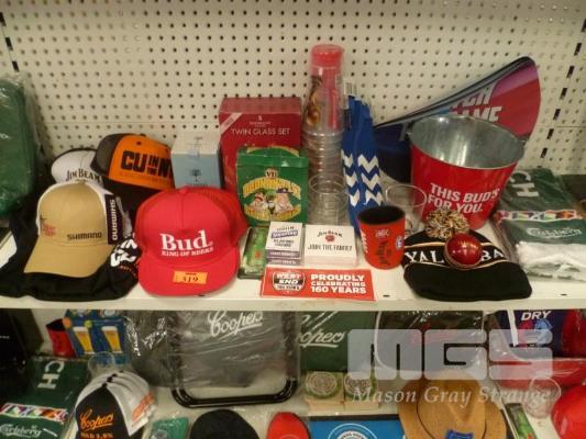 BEER & ALCOHOL MERCHANDISE PACK INC ICE BUCKET, HATS & BEANIE, STICKERS, SCARF, ETC