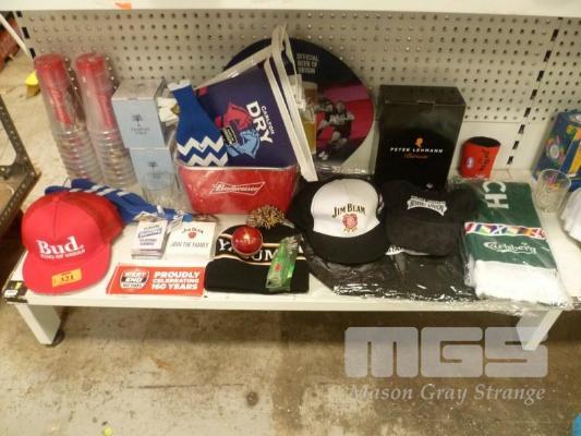 BEER & ALCOHOL MERCHANDISE PACK INC ICE BUCKET, HATS & BEANIE, STICKERS, SCARF, ETC
