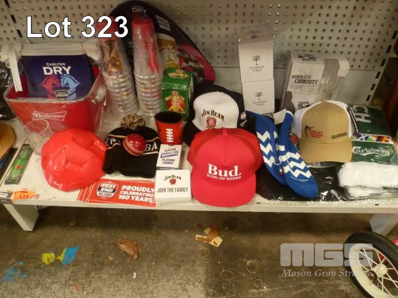 BEER & ALCOHOL MERCHANDISE PACK INC ICE BUCKET, HATS & BEANIE, STICKERS, SCARF, ETC