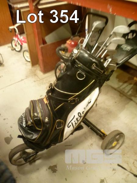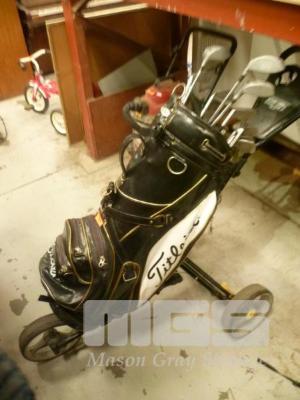 ASSORTED GOLF CLUBS & TITLEIST GOLF BUGGY