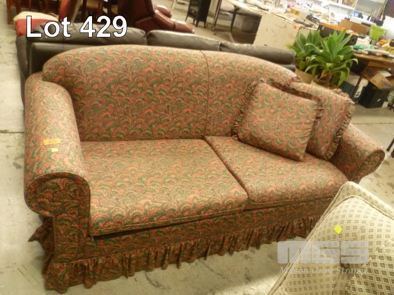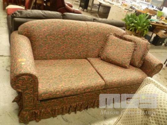 JASON, BURGANDY/GREEN FABRIC UPHOLSTERED ROLL ARM SOFA BED